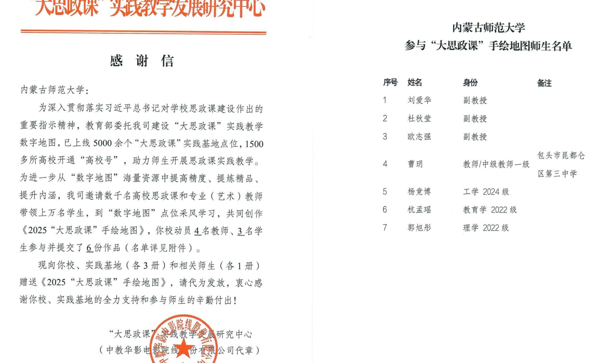 我校教师团队制作的实践资源入选教育部“2025‘大思政课’手绘地图”