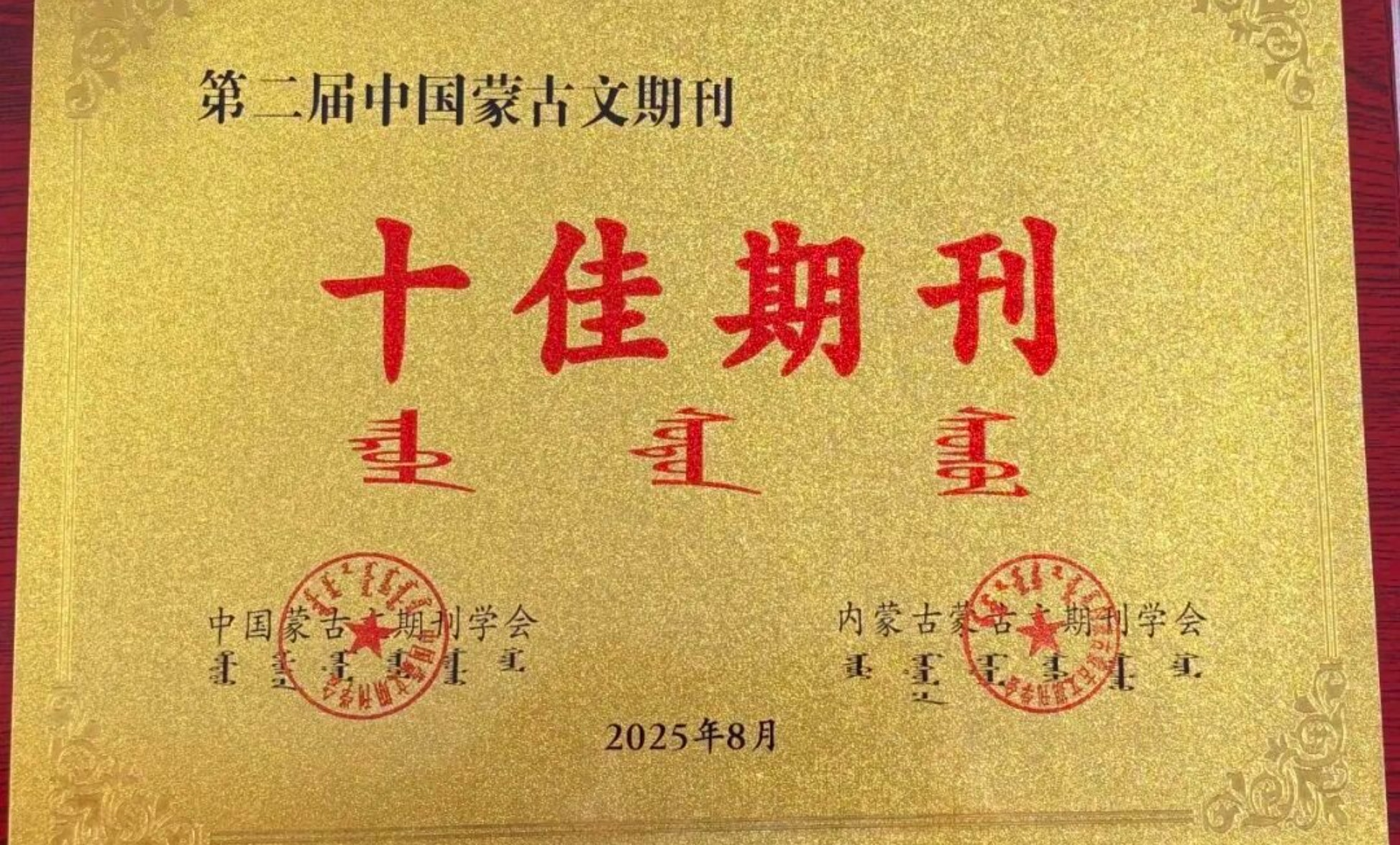 《内蒙古师范大学学报(哲学社会科学版蒙古文)》荣获第二届中国蒙古文期刊“十佳期刊”